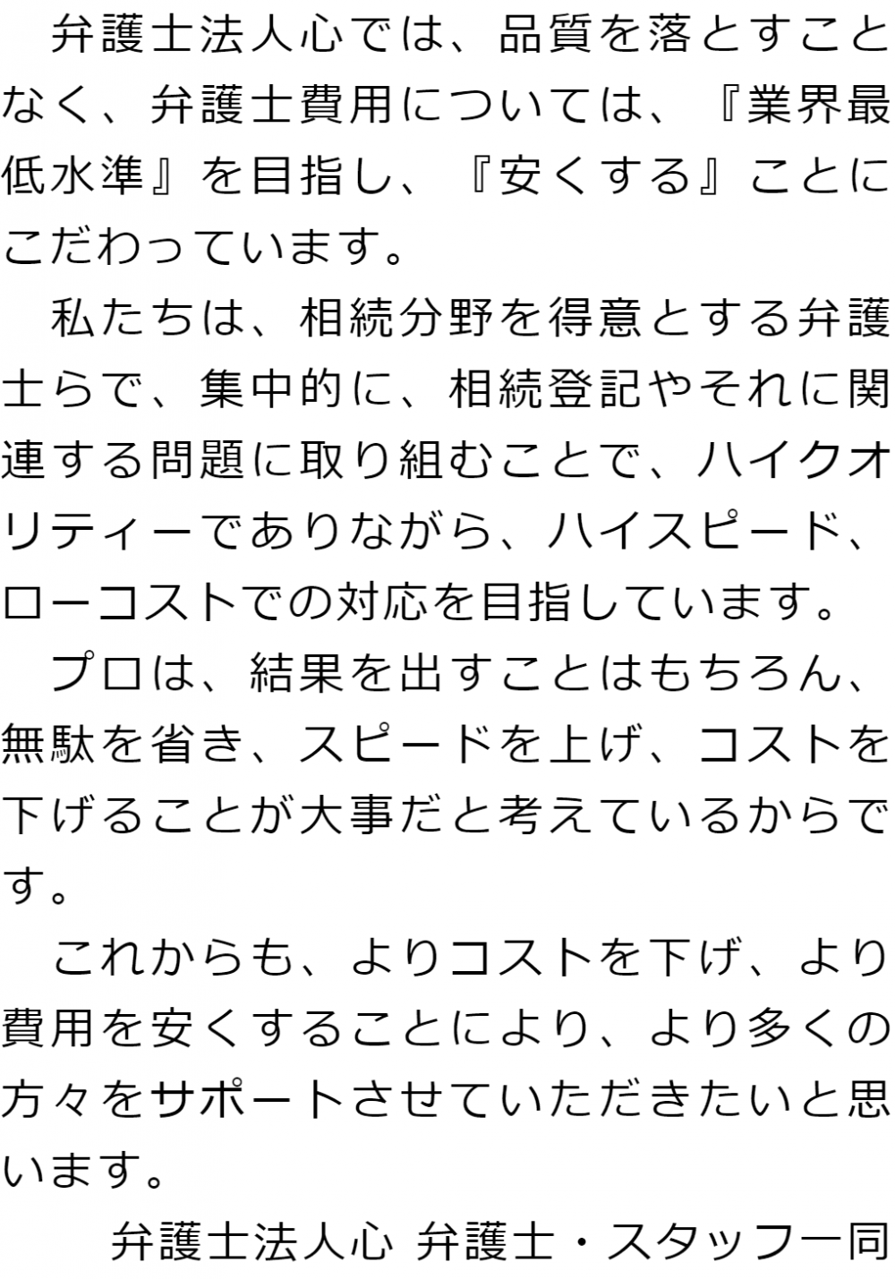 トップその他費用の安さにこだわる理由 階層構造▼ その他(目次) 費用の安さにこだわる理由 その他(目次)その他トップ新着情報(心グループニュース)電話・テレビ電話相談について代表メッセージお客様相談室費用(詳細)費用の安さにこだわる理由関連リンクお役立ちリンクプライバシーポリシー 受付時間 平日 9時~21時、土日祝 9時~18時 夜間・土日祝の相談も対応します (要予約) 所在地 〒273-0005 千葉県船橋市本町6-1-7KENEDIX船橋3F 0120-41-2403 お問合せ・アクセス・地図